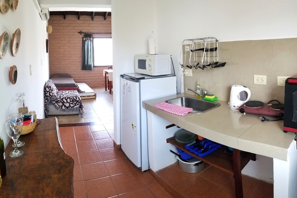 Excelente experiencia. Un mini departamento, con un dormitorio. Todo lo necesario incluído. Aire acondicionado en todos los ambientes, cocina, microondas, heladera, pava eléctrica, etc. A solo 4 cuadras de la plaza principal de Cafayate. Y a media cuadra del Museo del Vino. Lo recomiendo sin duda. Felicitaciones a la gente que hace Kamay Apart.